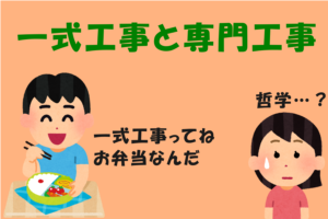 一式工事・専門工事とは? まず前提ですが、建設業には29種類の業種があり、 2種類の「一式工事」と27種類の「専門工事」に分類されます。 <一式工事> ・建築一式工事 ・土木一式工事 <専門工事> ・大工工事 ・左官工事 […]